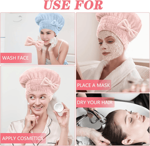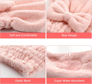 - 【Super Absorbent】The hair drying towels are made of high-quality microfibre fabric water-absorbent material. Fine and soft material with super water absorption, help to dry the hair quickly. What's more, it can protect your hair away from the hairdryer and traditional towels injuries, reduces frizz and breakage.
