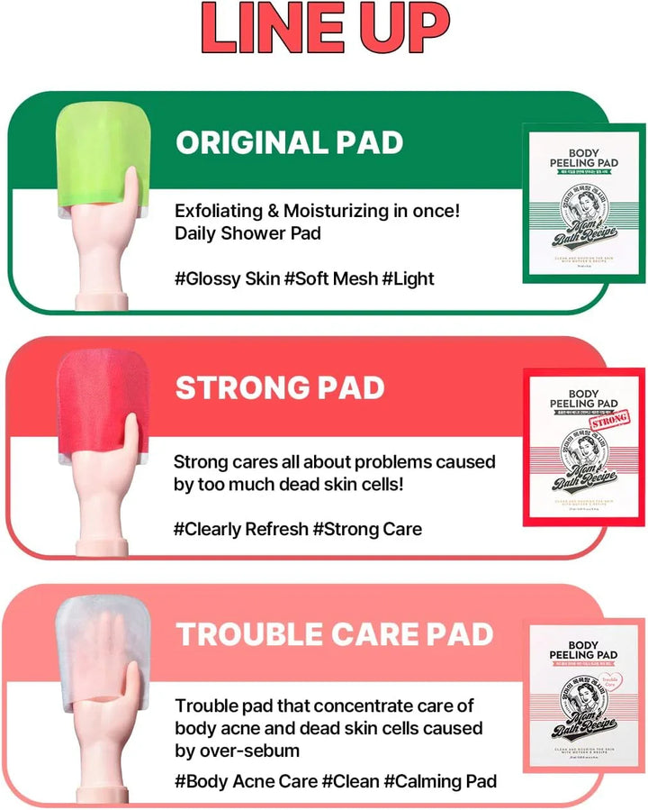 - PREMIUM BODY PEELING PADS: Mom's Bath Recipe Body Peeling Pads are a new and innovative way to exfoliate and revitalize your skin. These body scrub pads are designed to be used in place of traditional body wash or exfoliator, making them a convenient and easy-to-use solution for maintaining healthy and radiant skin all day.