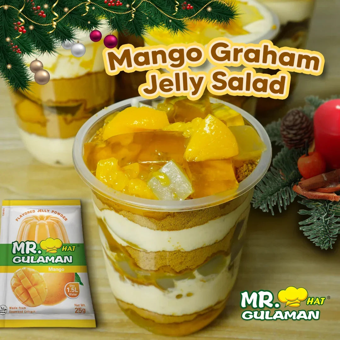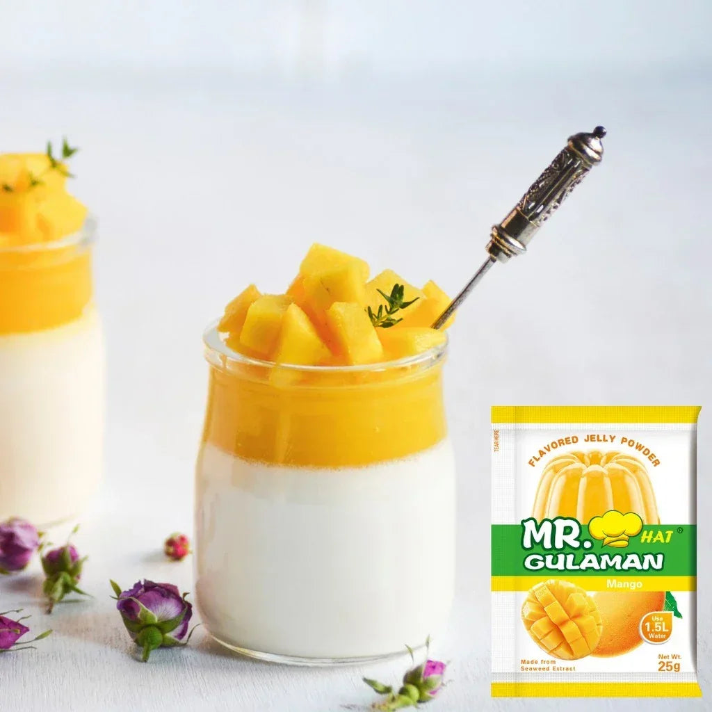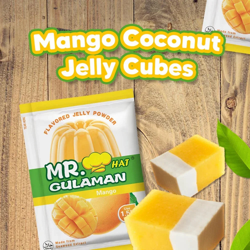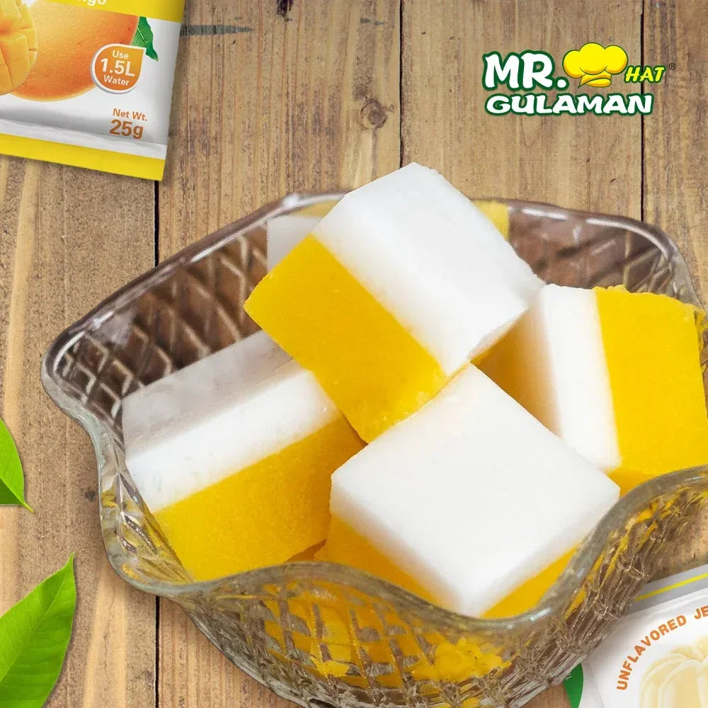 Create delicious, fruity desserts with Mr. Hat Gulaman Mango Flavored Jelly Powder! Made from the finest natural seaweed extract, this jelly powder delivers a smooth, firm, and flavorful mango jelly every time. —perfect for home use, parties, or small businesses.