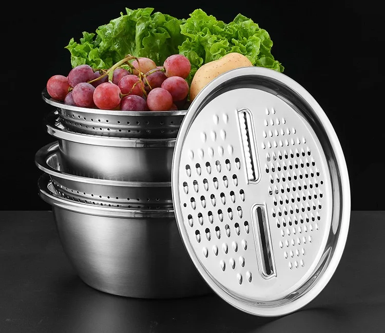 Multifunctional Stainless Steel Drain Basin 3 Pcs Set