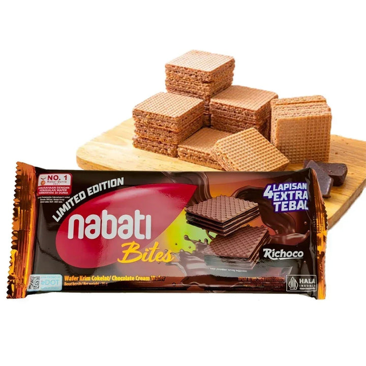 Richoco Nabati Bites Wafer Cream is a chocolate cream wafer made from a combination of real chocolate and quality selected ingredients to produce crispy wafers with a special taste. Richoco Nabati consists of a combination of crispy chocolate wafers and premium chocolate cream in each layer, giving you the sensation of eating unforgettable luxurious chocolate. Not only that, Richoco Nabati wafers contain vitamins, making it a delicious snack that is rich in nutrition.