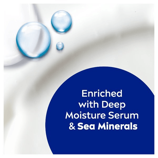 Enriched With A Combination Of Caring Ingredients, Including Nivea Deep Moisture Serum And Sea Minerals, This Body Lotion Protects The Skin And Delivers Fast Absorbing Moisture.