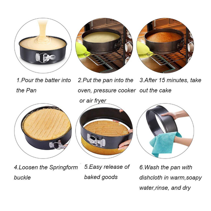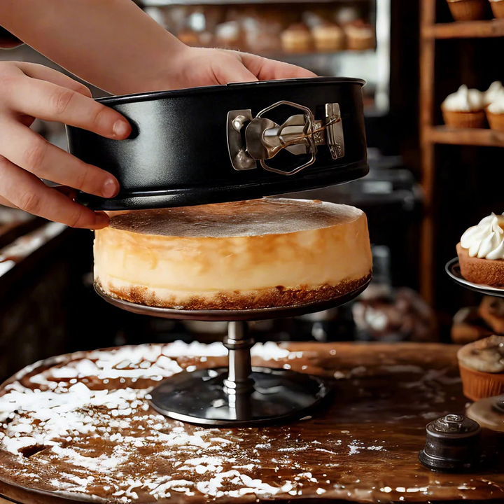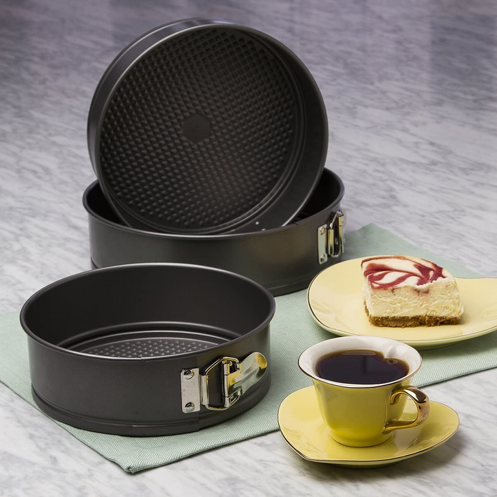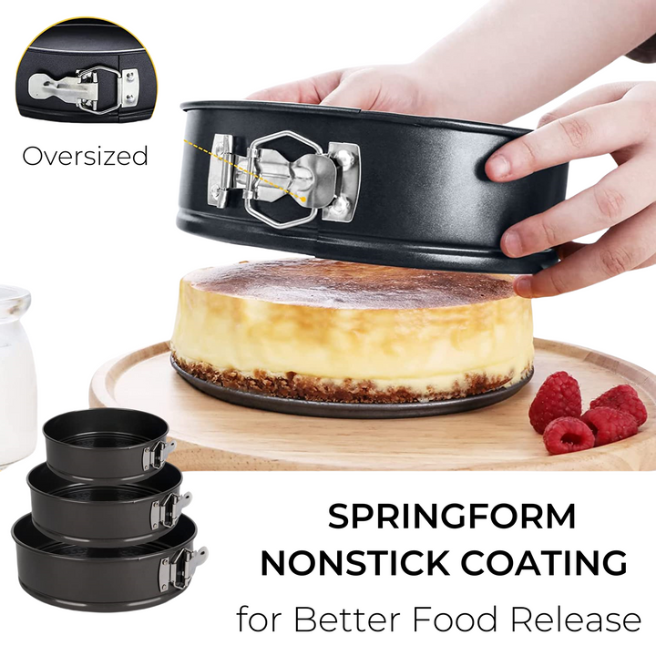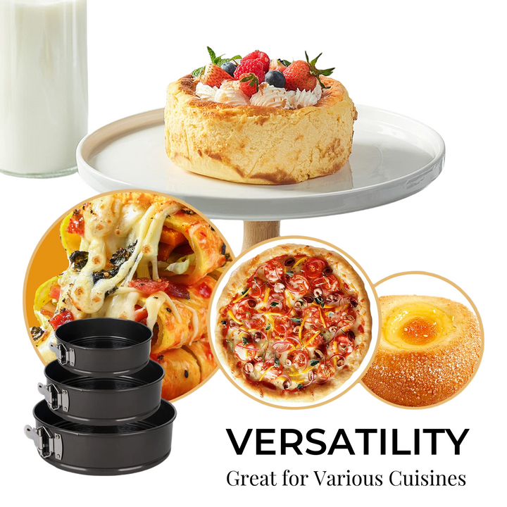 Each pan features a durable non-stick coating and a detachable springform base that makes removing, decorating, and serving your cakes easier than ever—no sticking, no tearing, just perfect results.