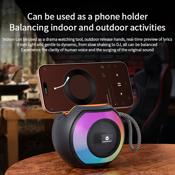 Experience powerful sound on the go with the ONEMUST Wireless Speaker, designed for deep bass performance and versatile connectivity. Lightweight, portable, and equipped with a hanging rope, it’s perfect for outdoor use, travel, or everyday listening.