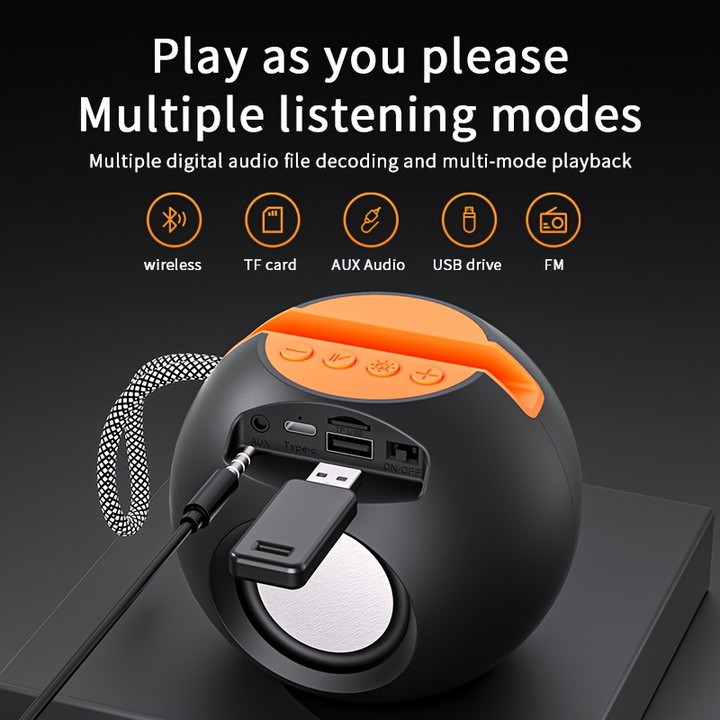Multiple Playback Options: Supports USB flash drive, TF card, AUX, wireless connection, and FM radio mode.