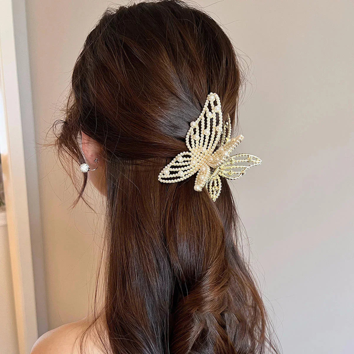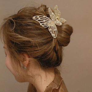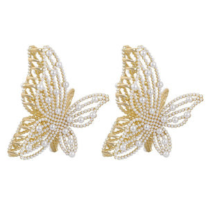 Pearl Unique Design Metal Hair Claw Clips Gold Color - 2 Pcs (C117)