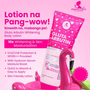 Experience the transformative effects of our Perfect Skin GLUTA ARBUTIN WITH SNAIL EXTRACT Whitening Body Lotion. Pamper your skin with this luxurious formula and achieve a brighter, more youthful complexion while enjoying the nourishing benefits it provides.