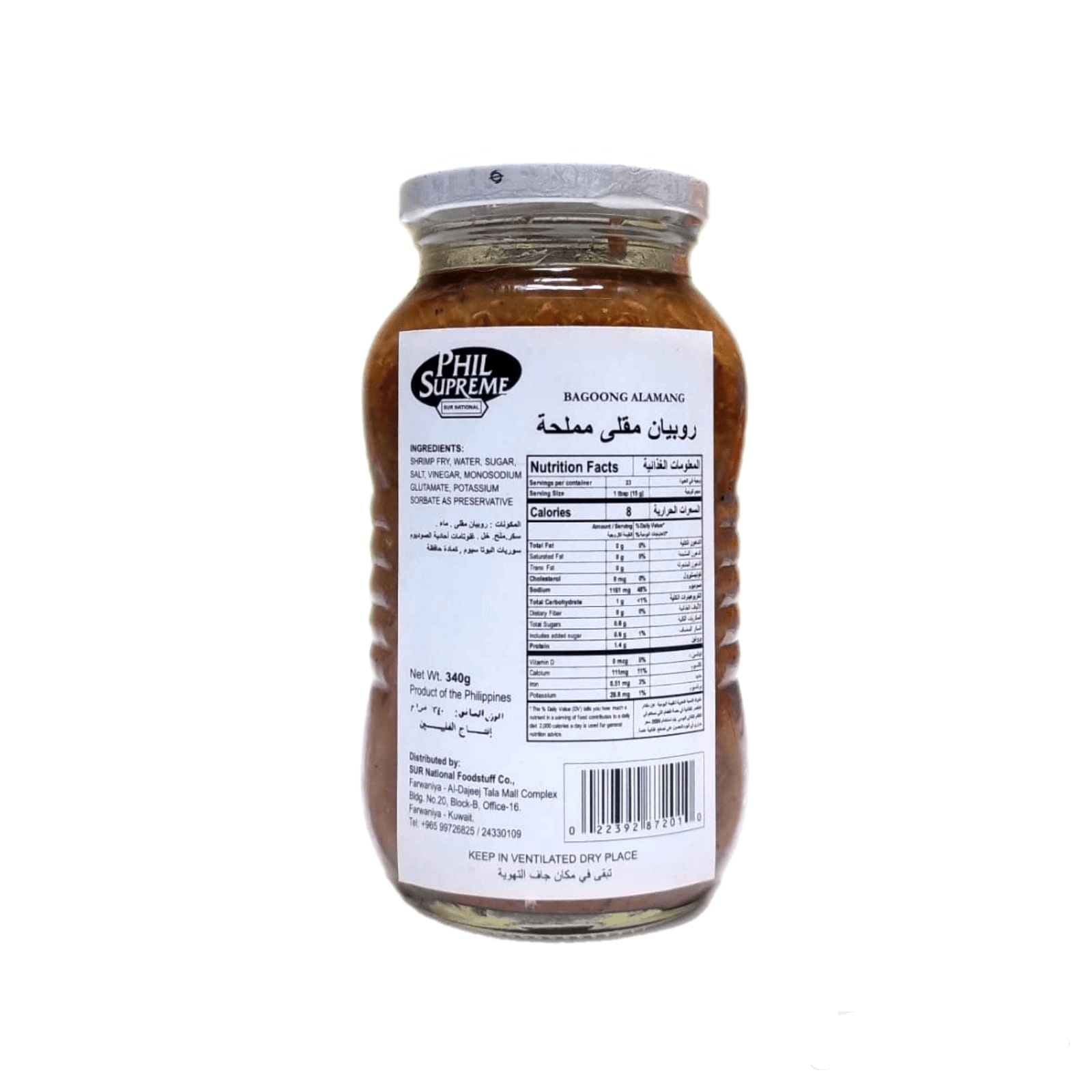 Phil Supreme Alamang Guisado is made from the finest selected shrimp. Ready to use for cooking with your favourite dishes like Pork Binagoongan, Pinakbet and other dishes that requires alamang.
