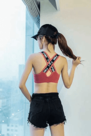 Pink Cotton Sports Fitness Bra & Underwear Set - 2058#