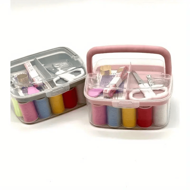 - 1. This sewing box set contains all the tools you need, such as needles, threads, scissors, thimbles, etc., purchased at one time, making it easier for you to carry out daily clothing sewing or handicraft creations