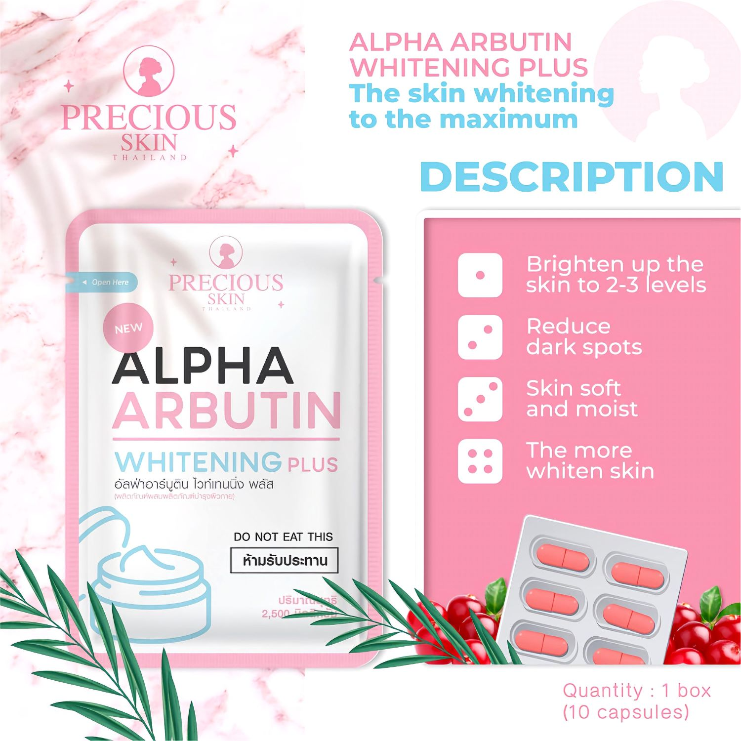 Precious Skin Alpha Arbutin 3 Plus Caps - 2.5g × 10s (External Use Only)