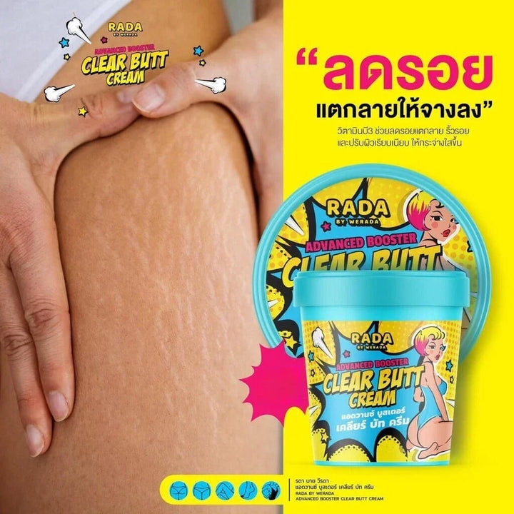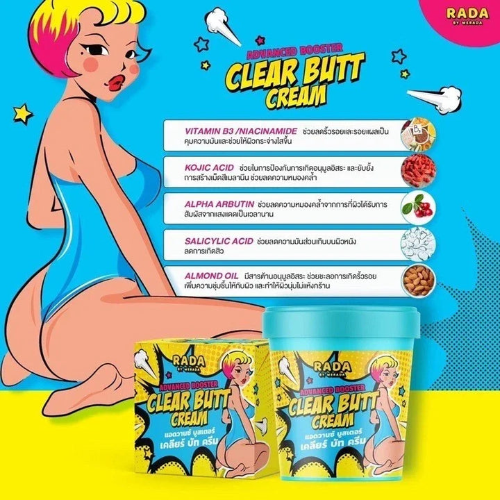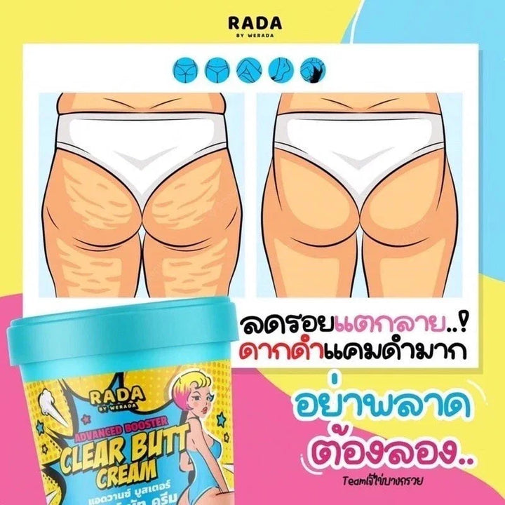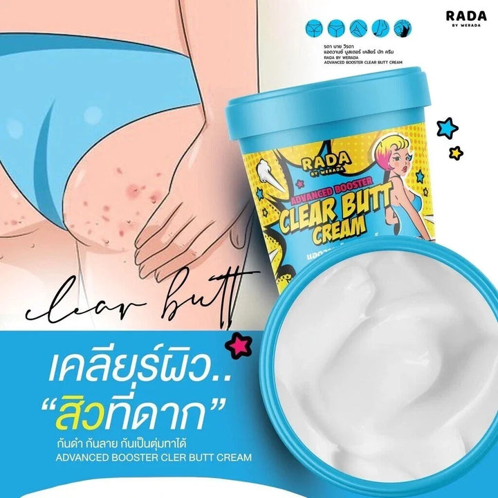 Transform the look and feel of your skin with Rada Advanced Booster Clear Butt Cream, a premium skincare solution from Thailand specially designed for the buttocks and other sensitive areas. This cream targets dryness, discoloration, uneven tone, and rough texture, leaving your skin visibly smoother, brighter, and more nourished.