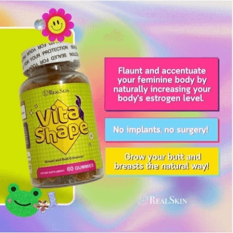 Get those curves! Real Skin Vitashape Gummies is an easy and delicious way to rock your dream body and boost your confidence! It helps you flaunt and accentuate your feminine body by naturally increasing your body's estrogen level. No implants, no surgery! Grow your butt and breasts the natural way!