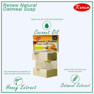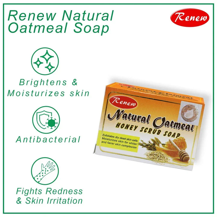 When used regularly, Renew Natural Oatmeal and Honey Scrub soap boosts your skin's natural renewal process helping you achieve a younger, healthier, and fairer skin. Excellent for all skin types, including sensitive and acne-prone skin.
