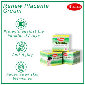 Renew Placenta Cream Contains natural active ingredients that helps in the prevention of wrinkles and delays the process involved in skin ageing.