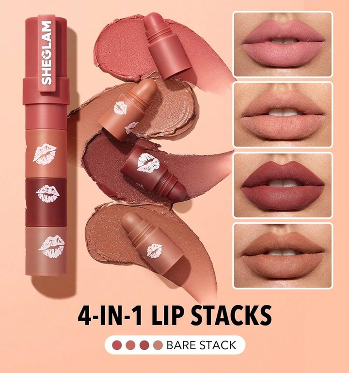 • 4-in-1 Lipstick Combos: Four matte lipsticks in one portable stack for endless lip looks