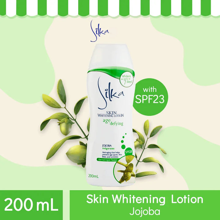 Experience the ultimate in skin rejuvenation with Silka Age Defying Jojoba Lotion SPF23, a premium skincare solution that combines powerful anti-aging properties with effective sun protection. Specially formulated to improve skin firmness and elasticity, this lotion helps reduce the appearance of fine lines, age spots, and uneven skin tone. The lightweight, non-greasy formula absorbs quickly into the skin, providing long-lasting hydration and a youthful, radiant complexion.