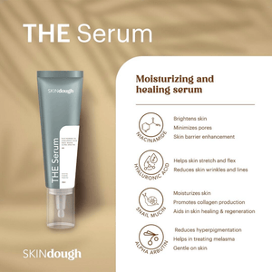 How to use: Morning and Night. Daily. Cleanse your face with your facial wash of choice. Pat dry with a clean towel. Pump 2-4 drops of THE Serum into your hands and rub it gently. Apply the serum to your face and neck. Allow the serum to soak in. Do not wash off or rub with a towel. Then apply THE Moisturizer by SKINdough.