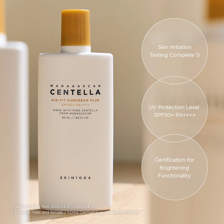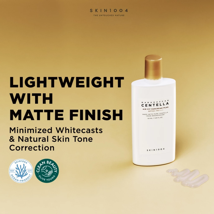 SKIN1004 Madagascar Centella Air-Fit Suncream Plus is a non-nano physical sunscreen that blocks UV rays, while simultaneously brightening the skin. This sunscreen can be worn all year long without feeling heavy or leaving a white cast.