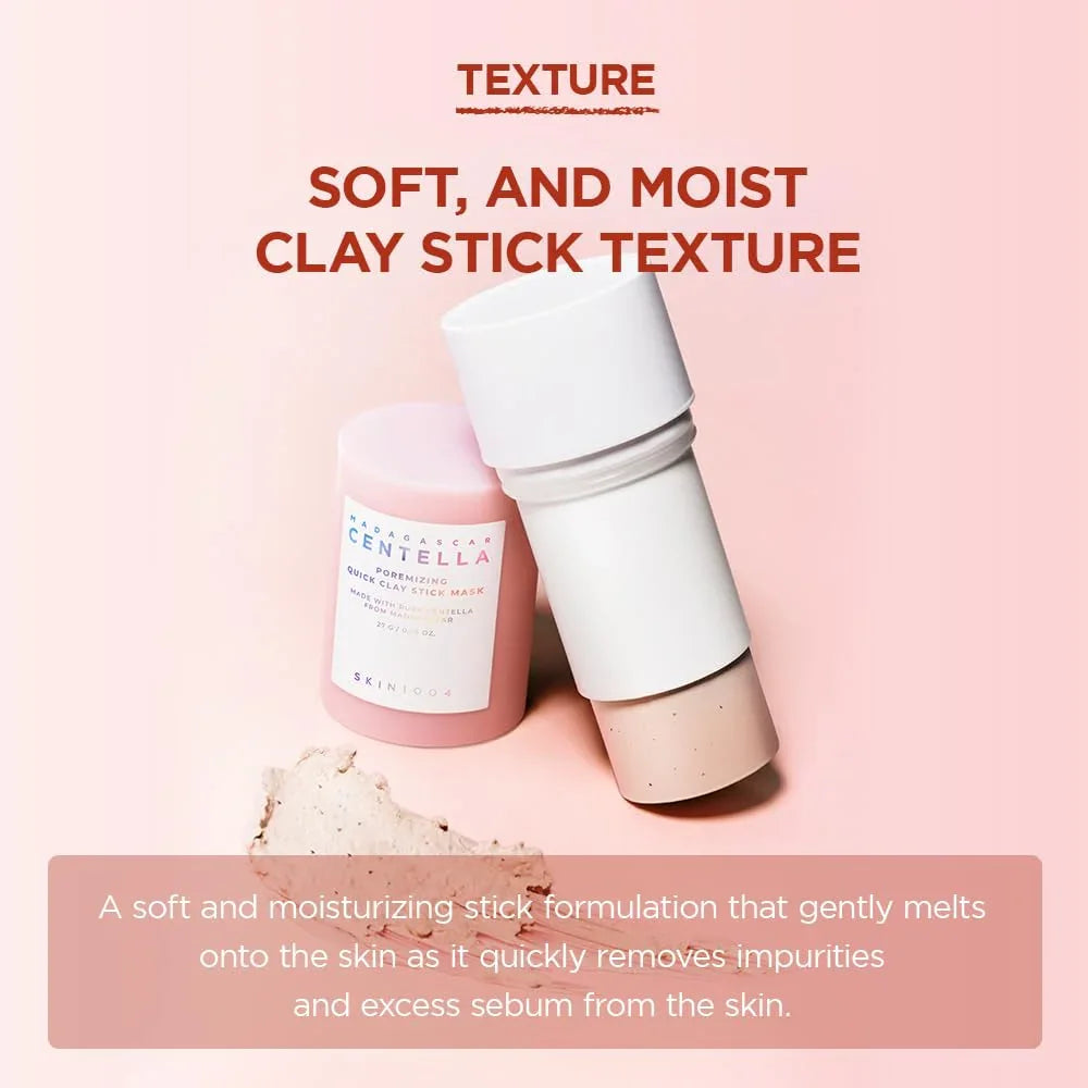 A smooth stick mask with 5 kinds of clays (18% Kaolin) and fine Red bean powder to soak up excess sebum and tightens enlarged pores.
