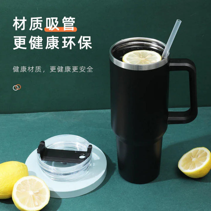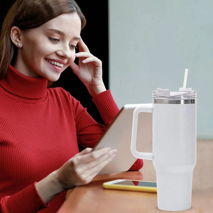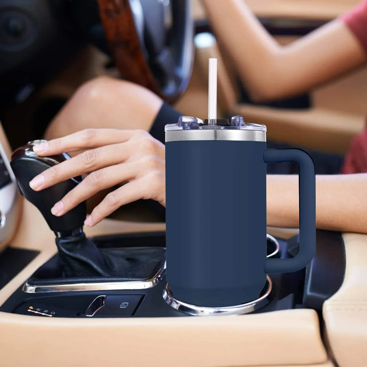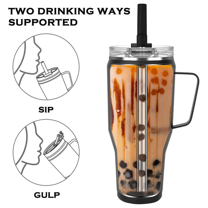 Straw & Handle: Convenient design with a handle and straw, fits easily in bags and cup holders.