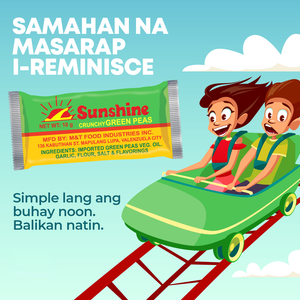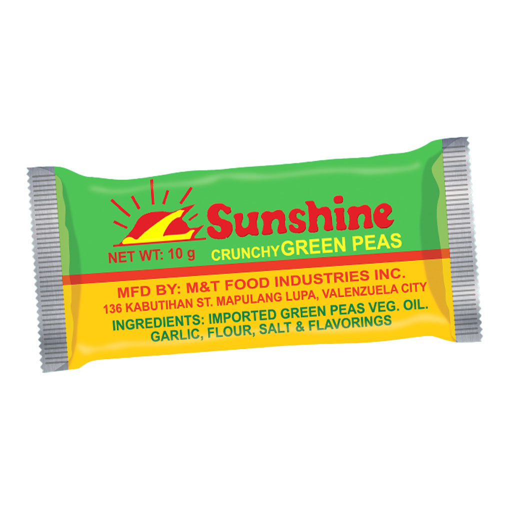 Enjoy the classic crunch Filipinos have loved for generations with Sunshine Crunchy Green Peas. Made from imported green peas coated in a light, flavorful seasoning, these bite-sized snacks deliver a satisfying crispy texture and savory taste in every pack.