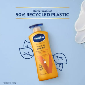 - Vaseline Intensive Care Almond Smooth Body Lotion comes in a bottle made using 50% recycled plastic