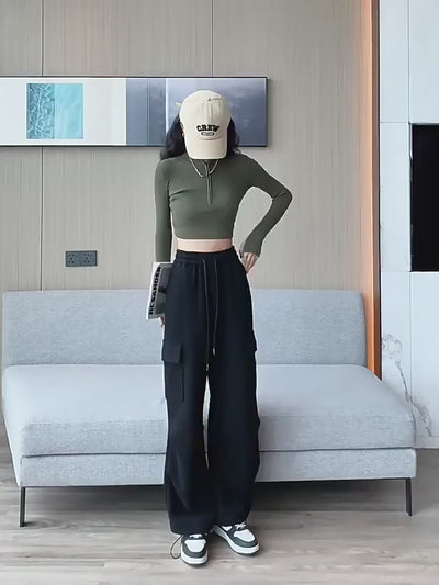 Women Fashion Baggy Wide Leg Pants With Pocket ZB-104