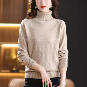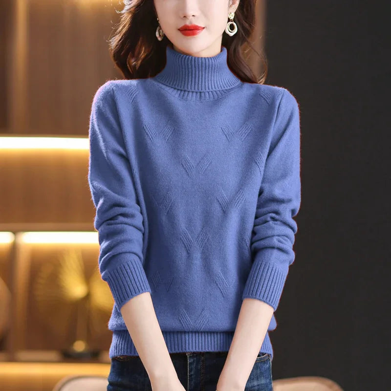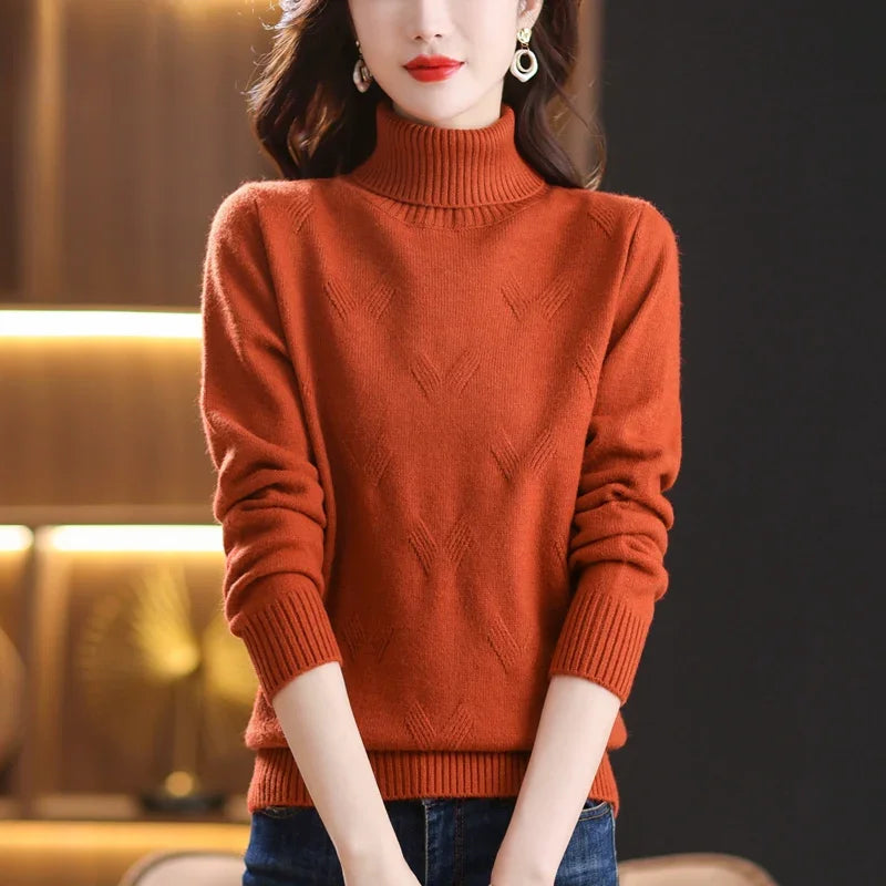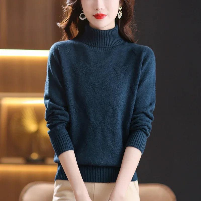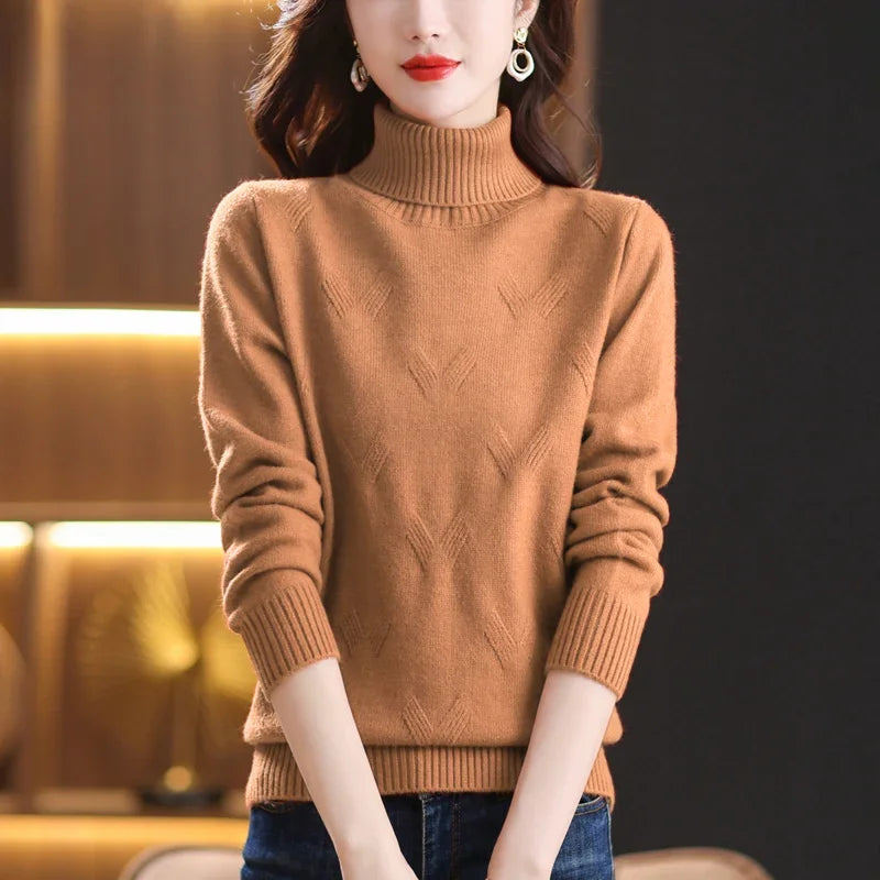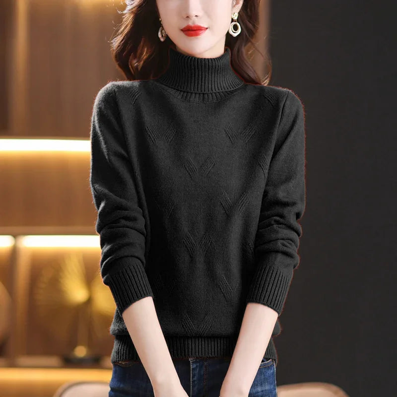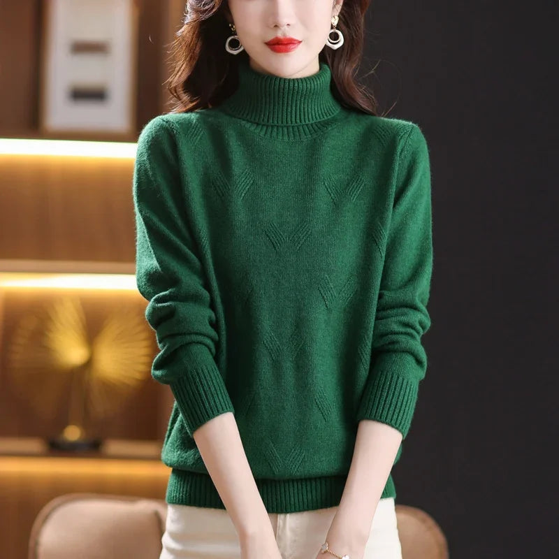 Women's Turtleneck Sweater with Subtle Diamond Knit
