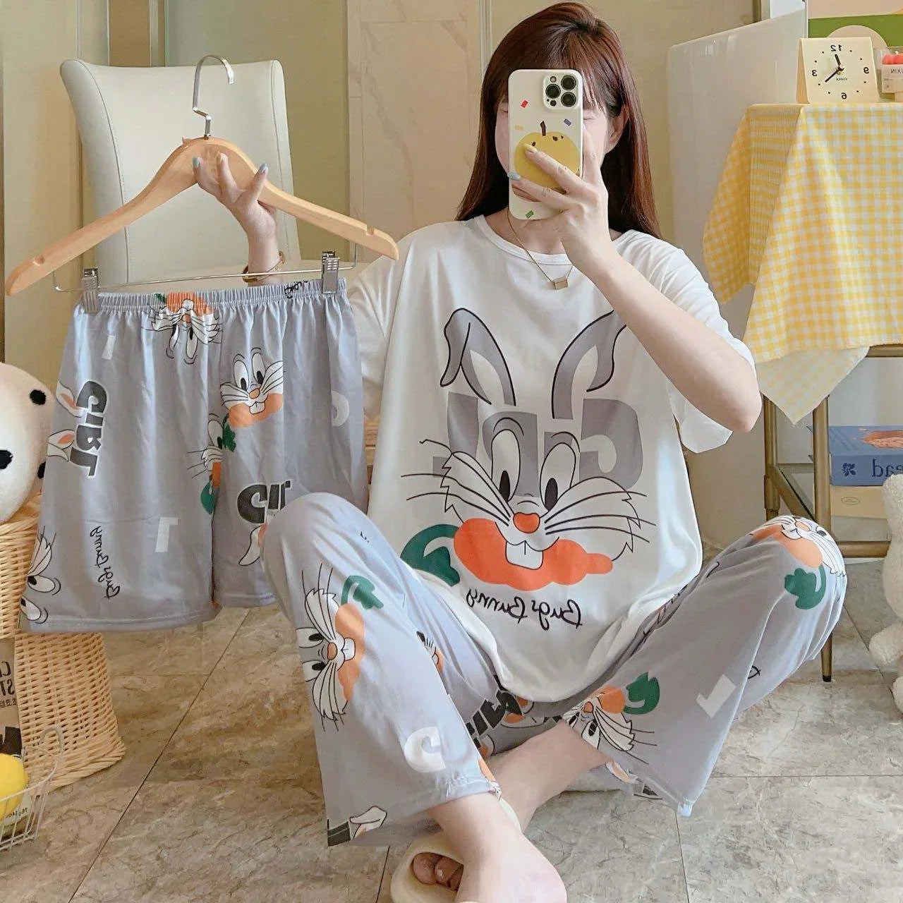Women's Korean Fashion Pajamas 3 Pcs Set - HXF:1008