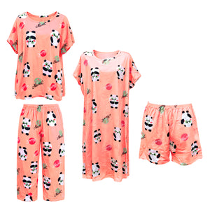 Women's Korean Fashion Pajamas 4 Pcs Set A-08