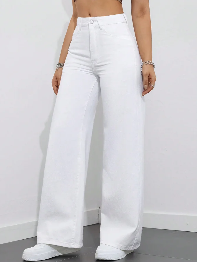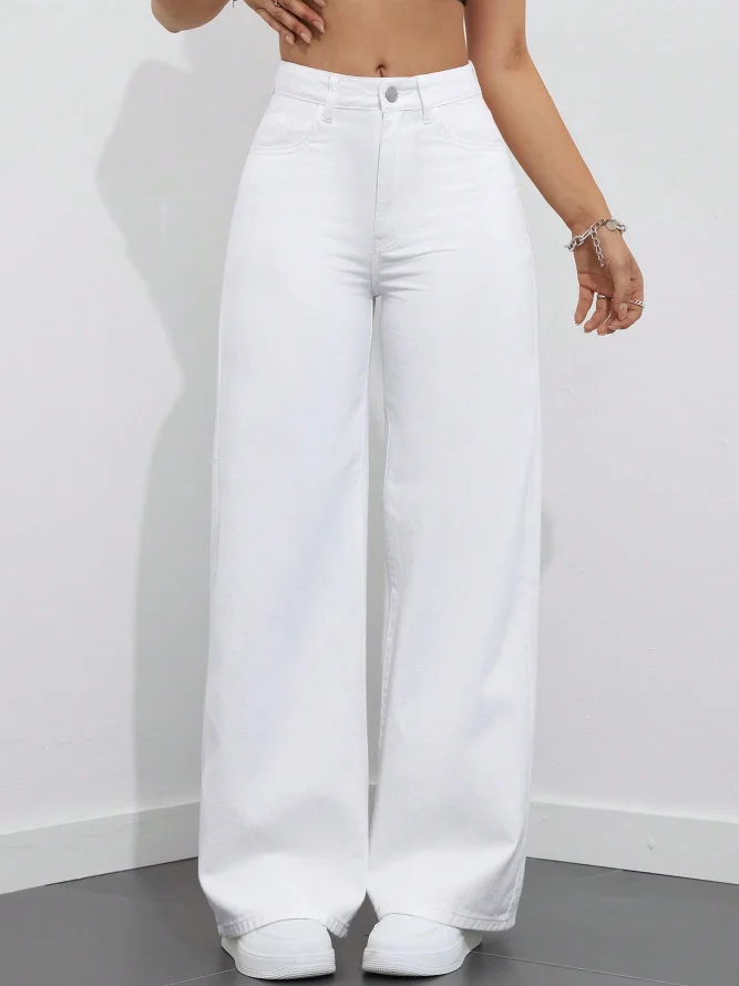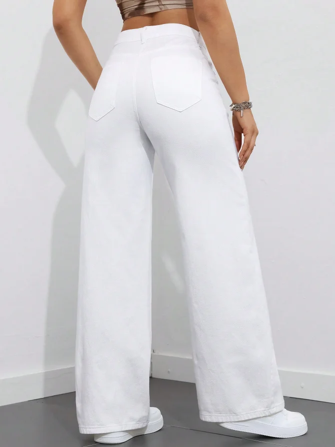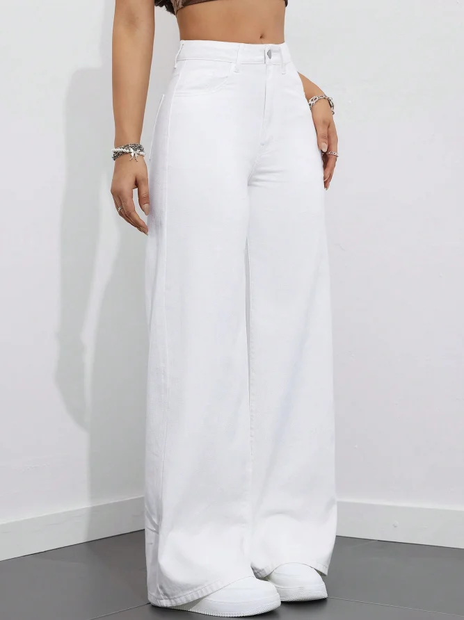 Women's Stylish Casual Wide Leg White Denim Pants - 8811#